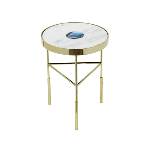 The Delilah Accent Table blends modern styling with thoughtful design. Featuring a polished gold metal frame and a white marble top inset with agat...