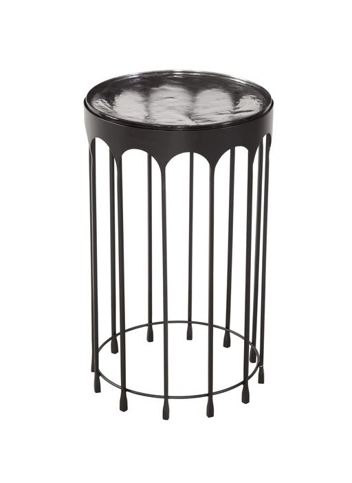 Introducing the Hartley Accent Table in sophisticated black contemporary style. Crafted with a thick, round cast glass top and a matte black iron b...