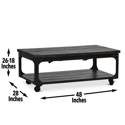 Sherlock presents rustic industrial styling in a lift-top cocktail set that will bring function to your living room tables. The highly distressed t...