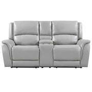 Alexandria - Leather Power Reclining Console Loveseat - Gray