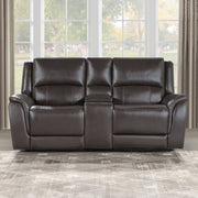 Alexandria - Power Leather Reclining Console Loveseat - Chocolate