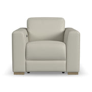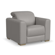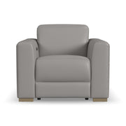 The luxurious look of upscale stationary furniture combines with functional adjustability with the Aurora power recliner with power headrest. Transform your living space into a stylish oasis for relaxation and surround yourself in contemporary comfort with design features such as soft, wide track arms and a low profile, stationary look with motion functionality. The power recline and headrest help you achieve maximum relaxation, while Zero Gravity technology gives you a feeling of weightlessness. At the heart of this chair's seat is Flexsteel's patented Blue Steel Spring™ provide lasting comfort and support. Upholstered in a high-quality, ash gray top-grain leather, the Aurora power recliner serves as a beautiful complement to any home.