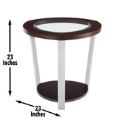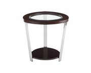 A contemporary styled occasional Table of stainless steel, wood and glass construction, Duncan features a spherical triangular shaped top that will instantly add interest to any room. A rich mixture of elements and espresso finish combine for a sophisticated modern look.