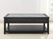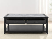 Transitional styling with a dark, smoky design, Garvine dresses up a living area with easy care style. Gray Sintered Stone tops add an elegant accent that offer easy clean-up with enhanced performance features including moisture and scratch resistance. A bottom shelf offesr display or storage options while drawers offer valuable storage to a room. Choose from Cocktail, End or Sofa Table or add all three for an instant Living Room setup.