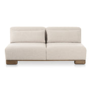 Designed with modular components that expertly function as standalone pieces or as part of modular configurations, the June collection is all about versatility. Wrapped in warm-toned, textured performance fabrics and elevated by oversized oak veneer legs, this piece combines everyday living and understated elegance. Built for ultimate relaxation — the plush feather and fiber fill, along with lumbar toss cushions, offer ultimate comfort.
