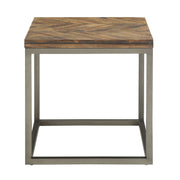 Lorenza presents rustic elegance in a set of occasional tables. This collection of cocktail, end and sofa table can be paired to fit your living space to deliver both functionality and style to any room. The fashion-forward sled style metal base pairs beautifully with the heavily distressed chevron-patterned smoky honey top to delivery a vintage feel comfortable with any casual style.