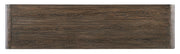 In a swanky inverted quadrangle shape, the casual modern Terra Credenza combines Pine Veneers with metal. The outside and top of the case has a dark wood finish, contrasting with white painted doors and a metal base. The three doors have soft-close hinges and magnetic door catches, with one adjustable shelf behind each door. There’s a ventilated back panel and 3-plug electrical outlet located behind the center door, making this credenza media-friendly. Rounded corners.