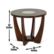 A bold expression of contemporary style, these Rafael occasional tables really set the mood for a modern interpretation for style. Soft flowing shapes define the collection with round tops highlighted with crackled glass tops that are a real show-stopper. The merlot cherry finish gives the group a sleek yet warm feel.
