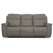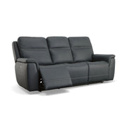 Transform your living space with the Sawyer power reclining sofa with power headrests and lumbar, a perfect blend of comfort and style. This stunning design features high-quality, gray top grain leather upholstery with unique cross-stitching and a distinct arm silhouette, adding a sophisticated touch to any room. Customize your comfort with power recline, headrests and lumbar support at the touch of a button and experience Zero Gravity reclining, relieving pressure from your joints. Designed for durability and longevity, this sofa includes Flexsteel’s patented Blue Steel Spring™, providing unmatched seat comfort and durability that you can count on.