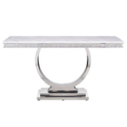 Zander - Sofa Table - White Printed Faux Marble Top & Mirrored Silver