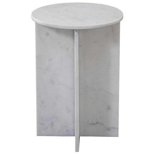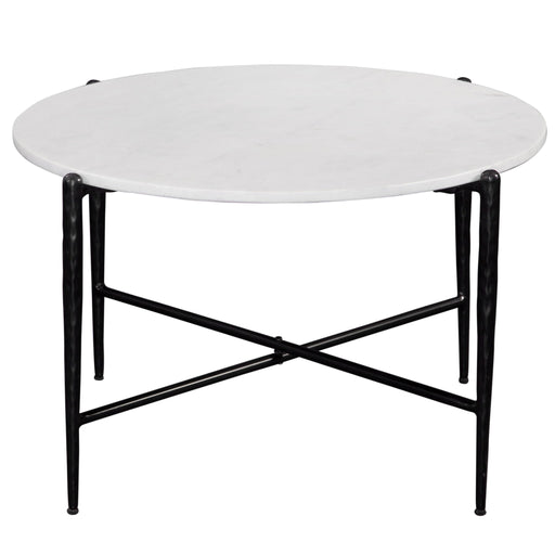 The Wyman Banswara Round White Marble Top Table showcases expert craftsmanship and refined elegance. Wyman - Marble Top Cocktail Table - Banswara W...