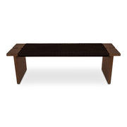 The Merritt outdoor bench blends indoor refinement with outdoor durability. This versatile bench features a solid teak frame complemented by woven, twisted synthetic hyacinth. The dark brown finish adds a touch of sophistication to any setting. Suitable for both outdoor use and as an entryway bench, it provides stylish seating and a subtle textural element to elevate any space.