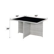 - Materials: Synthetic Wicker, Glass, Upholstered (Seat)