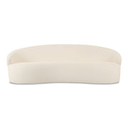 The Cove sofa's elegant design features a soft, curved form atop a sleek plinth base and discreet plastic leg, offering secure, graceful seating. Fully upholstered in a water-resistant, all-weather fabric, the sofa ensures a lasting look suitable for outdoor spaces.