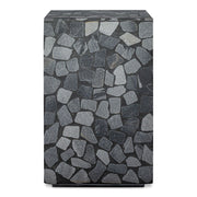 The Kiri outdoor side table features individual pieces of marble meticulously placed by hand in a concrete mold. After setting, the surface is polished to enhance the inherent luster of the marble amidst the sturdy concrete matrix. The deliberate arrangement allows the character of the natural stone and concrete blend to define its minimalistic design.