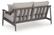 A refined marriage of style and durability, this outdoor loveseat adds contemporary flair to your porch or patio. Shades of gray and wood tones lend a versatile, neutral appeal. And it's built to last, with a rust-resistant frame and cleanable, UV-resistant fabric.