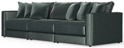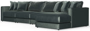 Remington is a track arm design Modular Sectional with loose backs and our Cuddler Cushion for ultimate comfort. Available in your choice of two luxurious velvet fabric colors: Pine or Slate.