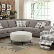 If your lifestyle is where traditional and country cottage meet, the Willow Creek collection is for you! Elegant features like nailhead trim, rolled arms on the sectional, soft gray gingham on the pushback chair, and wheeled ornamental feet on the round ottoman are clothed in the casual comfort of pebble brown and stripes. Give your home an easy update with the eclectic style of Willow Creek.