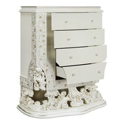 Bringing a modern approach to the classic ornate Rococo style, the Adara bed blends in contemporary touches with traditional design details. The PU adds a fresh approach to the intricately embellished bed. The antique white is embellished with light gold hand brushed details to make the floral motifs pop. This is one statement piece that will impress everyone.