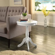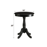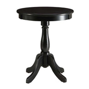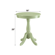 Offered in four colors: White, light yellow, black and light green in the sought after shabby chic look. The Alger side table exemplifies this look and elegantly designed with its traditional design of round top, shapely turned base and four stylized knee legs. This table will go well with any design style.
