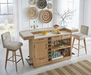 - Set includes stone top 78" bar and two swivel barstools from the Escape Collection