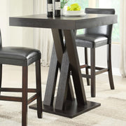 Amplify the style of an eat-in kitchen or dining nook with this gorgeous, contemporary table. A bold, crisscross design lends an updated twist to a classic silhouette. Sturdy supports blend appealingly with a handsome, square wooden top. A lovely, cappuccino-colored finish rounds out its charming appeal. Add four matching bar stools to create the perfect gathering space to eat, drink, and connect with your loved ones.