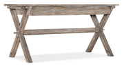 The classic sawhorse desk gets sophisticated with this chic writing desk with an X-base design and crafted of Oak Veneers in a soft light wood finish. There’s one drop-front keyboard drawer.