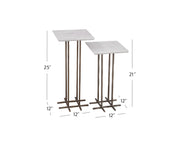 The Xavier Accent Tables Set features modern inspired style. This 2 piece accent table set features hand-hammered iron bases, each finished in antique gold. The square table tops are white Indian marble.
